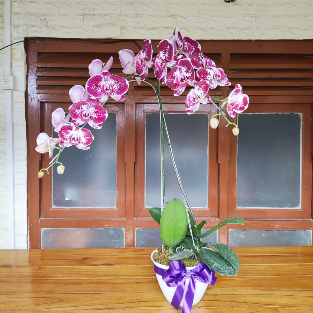 Rangkaian bunga anggrek bulan. Dirangkai dengan vas . Cocok sebagai hadiah ulang tahun, hari Ibu, anniversary, grand opening dan momen lainnya.