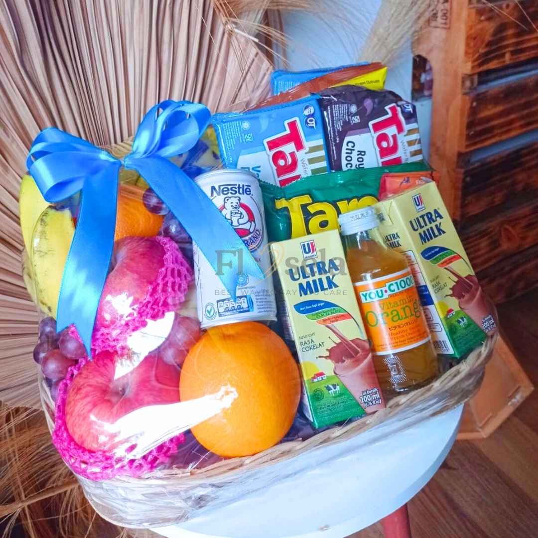 Parcel buah segar, snack dan minuman. Cocok diberikan sebagai hadiah untuk teman/saudara/kolega.